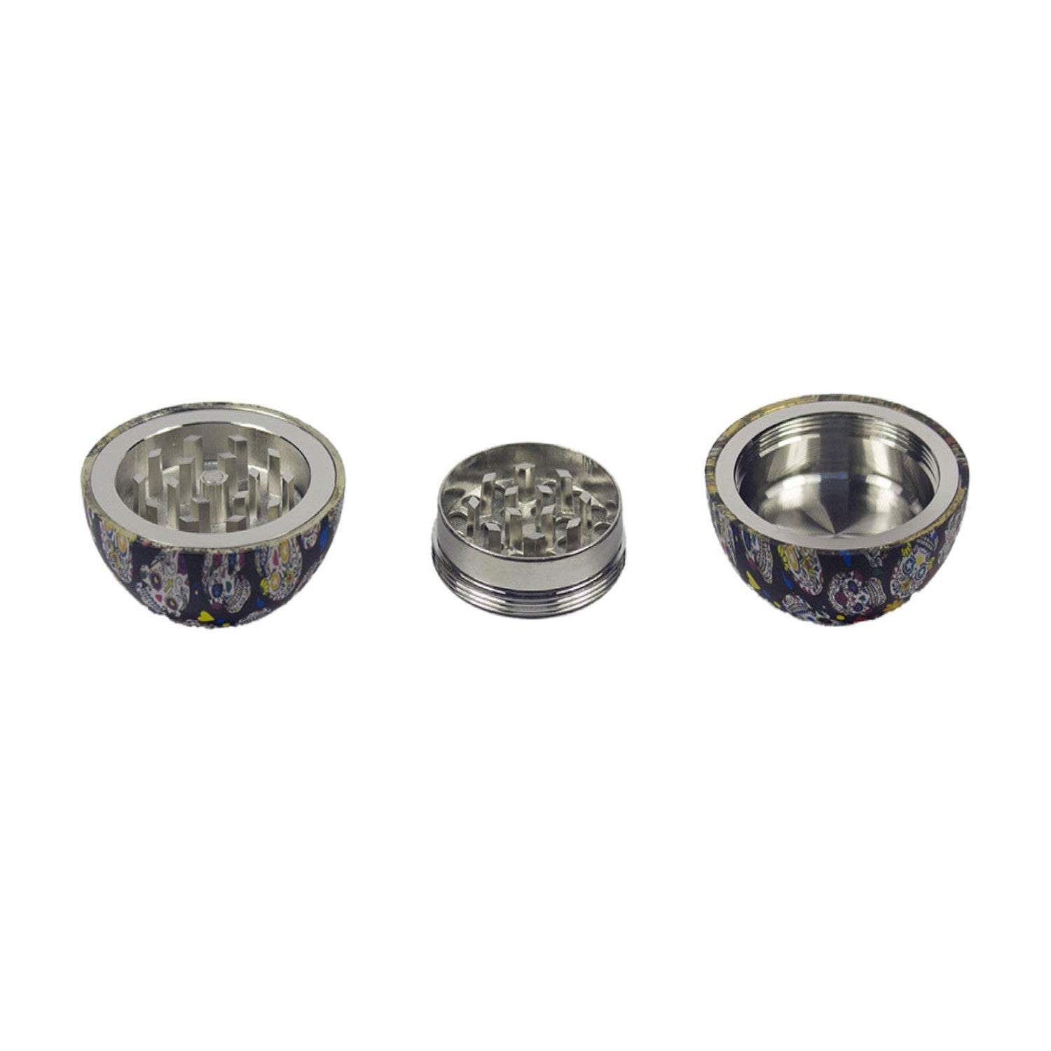 3-Part Metal Tobacco Grinder with Decorative Sugar Skull Design - Portable Herb