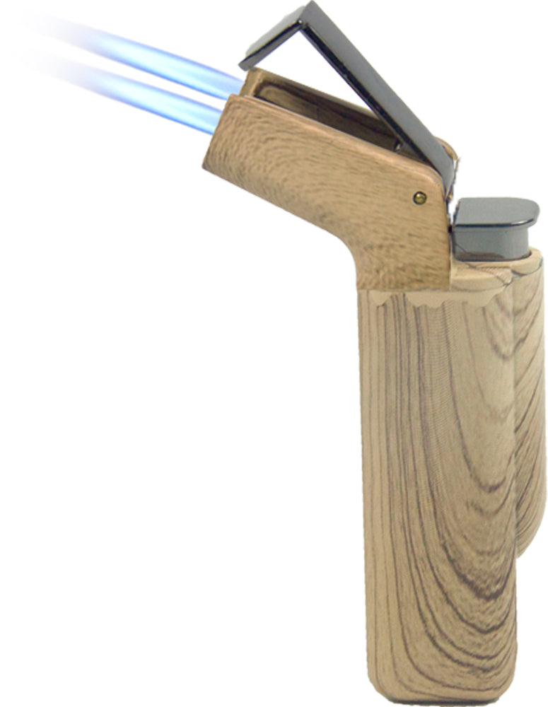 Wooden Finish Double Jet Torch Lighter Adjustable Flame Dark Wood Color